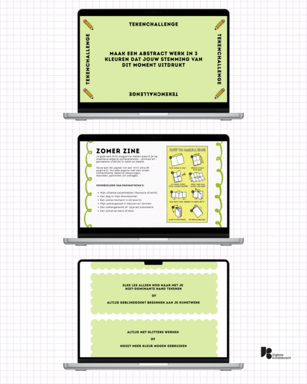 Op zoek naar een inspirerende en makkelijk inzetbare afsluiting van het schooljaar? 8 Creatieve Afsluiters is een kant-en-klaar pakket met 8 speelse opdrachten voor de laatste lessen beeldende vorming of CKV. Ideaal voor de drukke eindweken waarin je leerlingen toch nog creatief wilt uitdagen én laten terugblikken op hun kunstjaar.